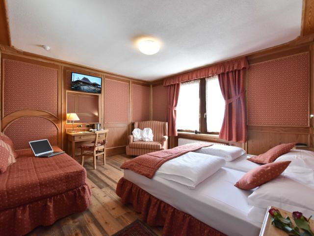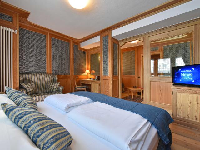 Perhehuone 4 hengelle, jossa parivuode ja kaksi lisävuoteet, kylpy/suihku ja WC.