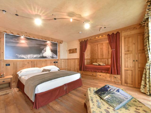 Perhehuone, jossa parivuode ja lisävuoteet, kylpy/suihku ja WC.