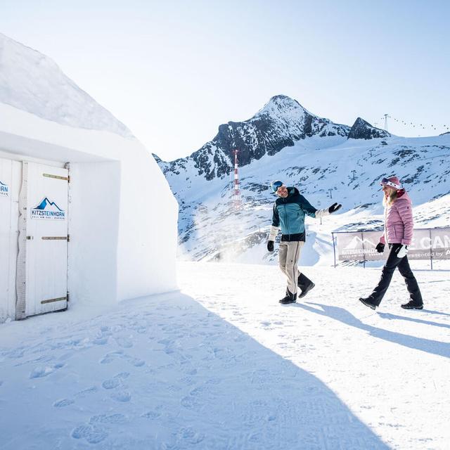 Ice Camp Kitzsteinhorn sijaitsee jäätikön huipulla, peräti 2600 metriä merenpinnan yläpuolella, ja tarjoaa vaikuttavaa jäätaidetta ja upeita näkymiä. Kolme mahtavaa iglua on täynnä lumesta ja jäästä tehtyjä taideteoksia, joiden ääni- ja valotehosteet vievät kävijät toiseen maailmaan. Ulkona on suuri aurinkoterassi, jossa voit pitää tauon ja rentoutua musiikin, juomien ja Alppien panoraamanäkymien parissa. Ice Camp Kitzsteinhornille pääsee suoraan rinteiltä.