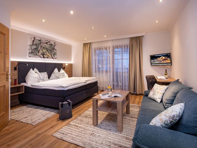 Junior-sviitti 3-4 hengelle, jossa makuuhuone, olohuone lisävuoteilla, kylpy/suihku, WC ja parveke.