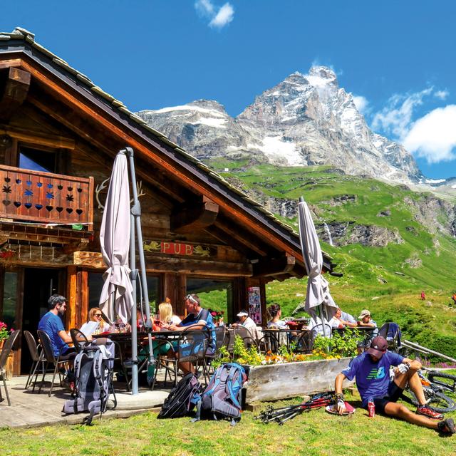 Tänään on aika viikon ensimmäisen pyöräretken. Aamiaisen jälkeen kokeilemme pyöriä ja lähdemme matkaan. Aloitamme pyöräilemällä ylös kohti Lago Goilletia ennen kuin lähdemme kohti Saletten hissiä. Täältä pyöräilemme viereiseen Valtournenchen kylään, jossa pysähdymme nauttimaan lounaasta. Iltapäivällä pyöräilemme laakson toiselle puolelle, jossa meitä odottaa ”Strada Agricola Crepin Liortere”. Tämä leveämpi vaellusreitti vie meidät takaisin kohti Cerviniaa, jossa päivän After-Bike odottaa. Sen jälkeen on aika illallisen, josta voit halutessasi jatkaa jännittävään tietovisaan (maksua vastaan).