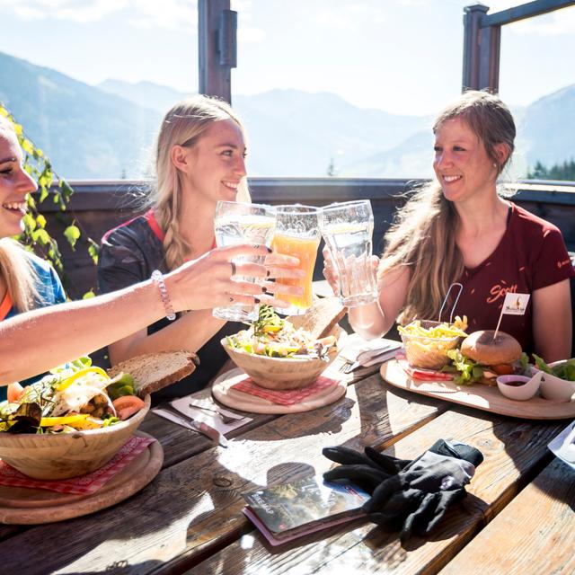 Jos haluat yhdistää pyöräilyn ja patikoinnin hyvään ruokaan, Saalbach on täydellinen kohde. Täältä löydät monia viihtyisiä mökkejä ja vuoristoravintoloita eri puolilla reittejä, joissa voit pitää ansaitun tauon ja nauttia paikallisista herkuista. Suurilta aurinkoisilla terasseilla voit maistella perinteisiä ruokia, mutta näet myös upeat näkymät Alppien maagiseen maisemaan. Täydellinen yhdistelmä patikointia ja kulinaarisia herkkuja!